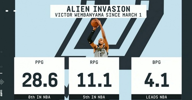开云体育下载入口-毁天灭地!3月以来文班场均4.1帽领跑全联盟 28.6分第8&11.1板第5